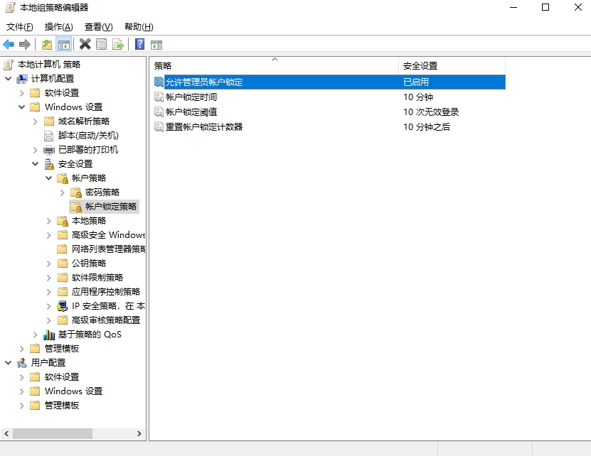 选择“允许管理员帐户锁定”改为已禁用,重启电脑即可生效。